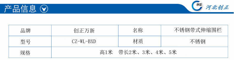 產(chǎn)品名稱:不銹鋼帶式伸縮圍欄